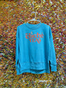 This is a pre-owned garment we purchased at a thrift store, laundered, then had screen printed by a local small business. If you want any more details on it, just shoot us a message!